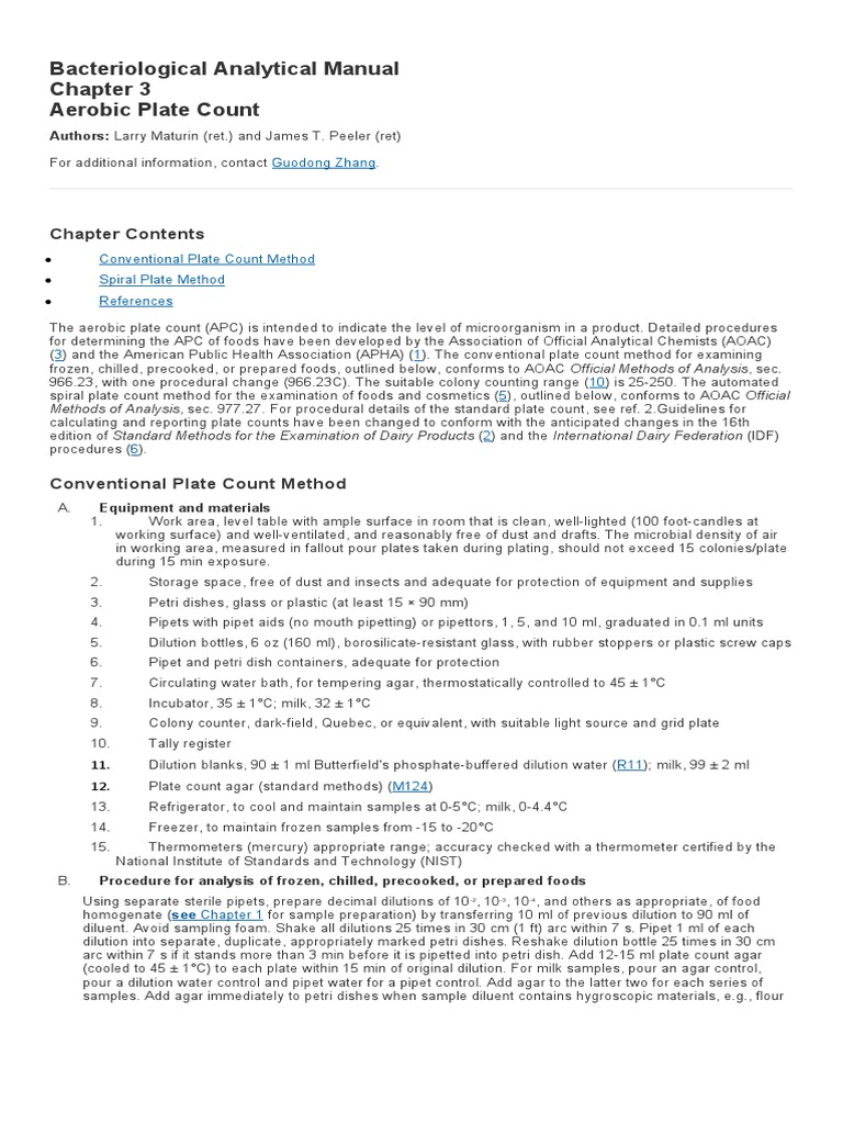 Bacteriological Analytical Manual Aerobic Plate Count Chapter Contents PDF Colony Forming